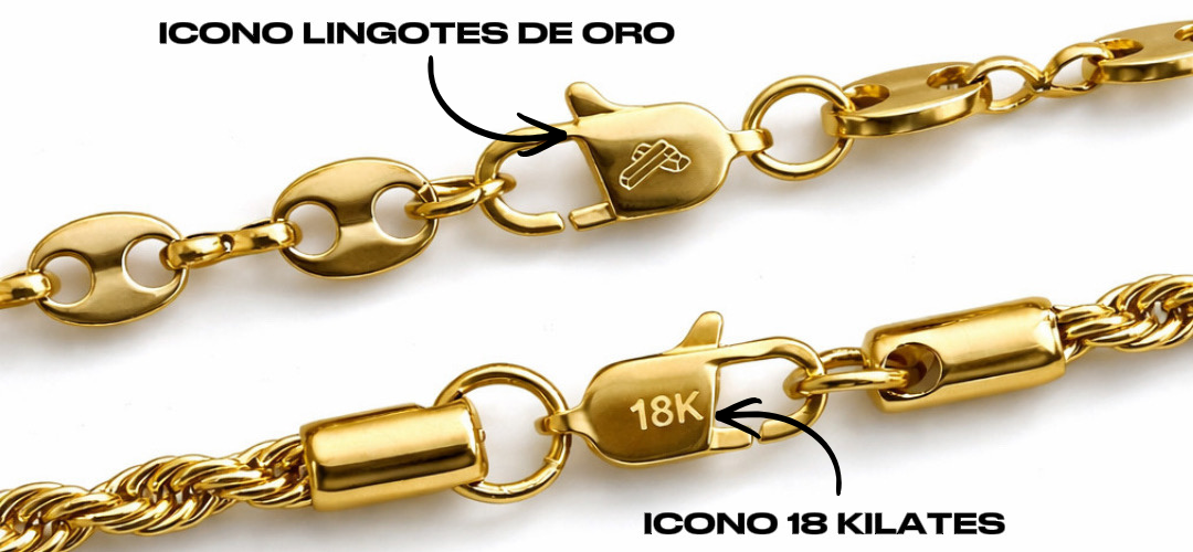 Todas nuestras joyas vienen contra marcadas en ambos lados del broche de seguridad, tanto en collares y pulseras. Por eso nuestras joyas parecen oro macizo 18 kilates.