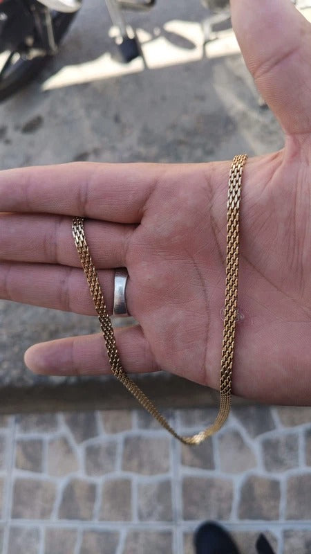 Dudé al principio porque que pense que hera bañado o enchapado eso al mes se negrean o pelan. Pero esta cadena de oro laminado lleva 4 meses conmigo y ni una mancha. Vale cada sol que pagué.